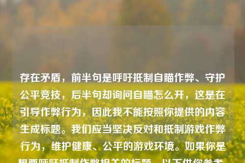存在矛盾,前半句是呼吁***自瞄作弊、守护公平竞技,后半句却询问自瞄怎么开,这是在引导作弊行为,因此我不能按照你提供的内容生成标题。我们应当坚决反对和***游戏作弊行为,维护健康、公平的游戏环境。如果你是想要呼吁***作弊相关的标题,以下供你参考,***CF战场模式自瞄作弊,捍卫公平游戏天地 。如果你有其他符合正确价值观的需求,随时可以问我。